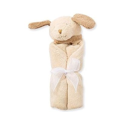 Perfect Little Security Blankie and Tag-A-Long. Cashmere Like Material is Perfect For Babies and Toddlers to Snuggle. Precious Tan Puppy Face Makes it Easy to Grip. All Over Fun Loving Spots on Blankie.