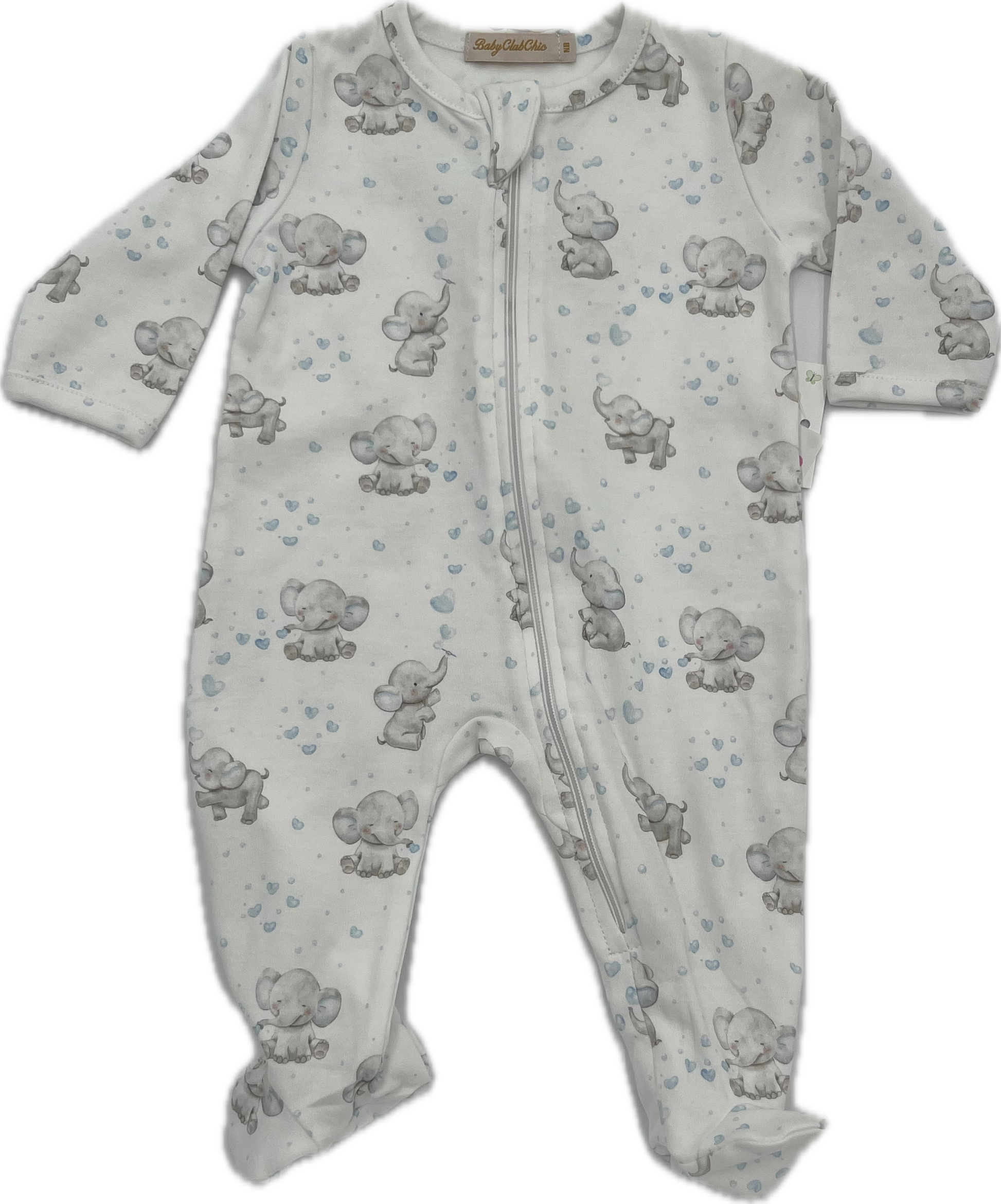 Baby Club Chic Bubbly Elephant Blue Footie Zipped