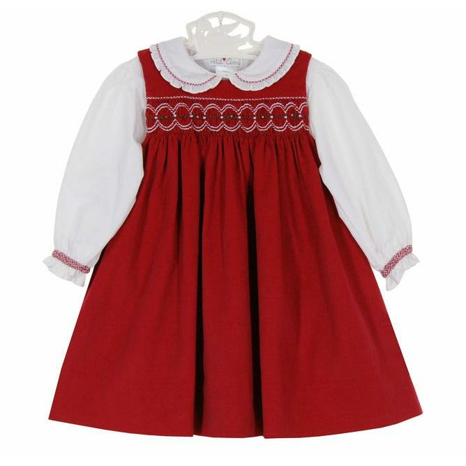 Christmas Girl Red Cord Smocked Dress