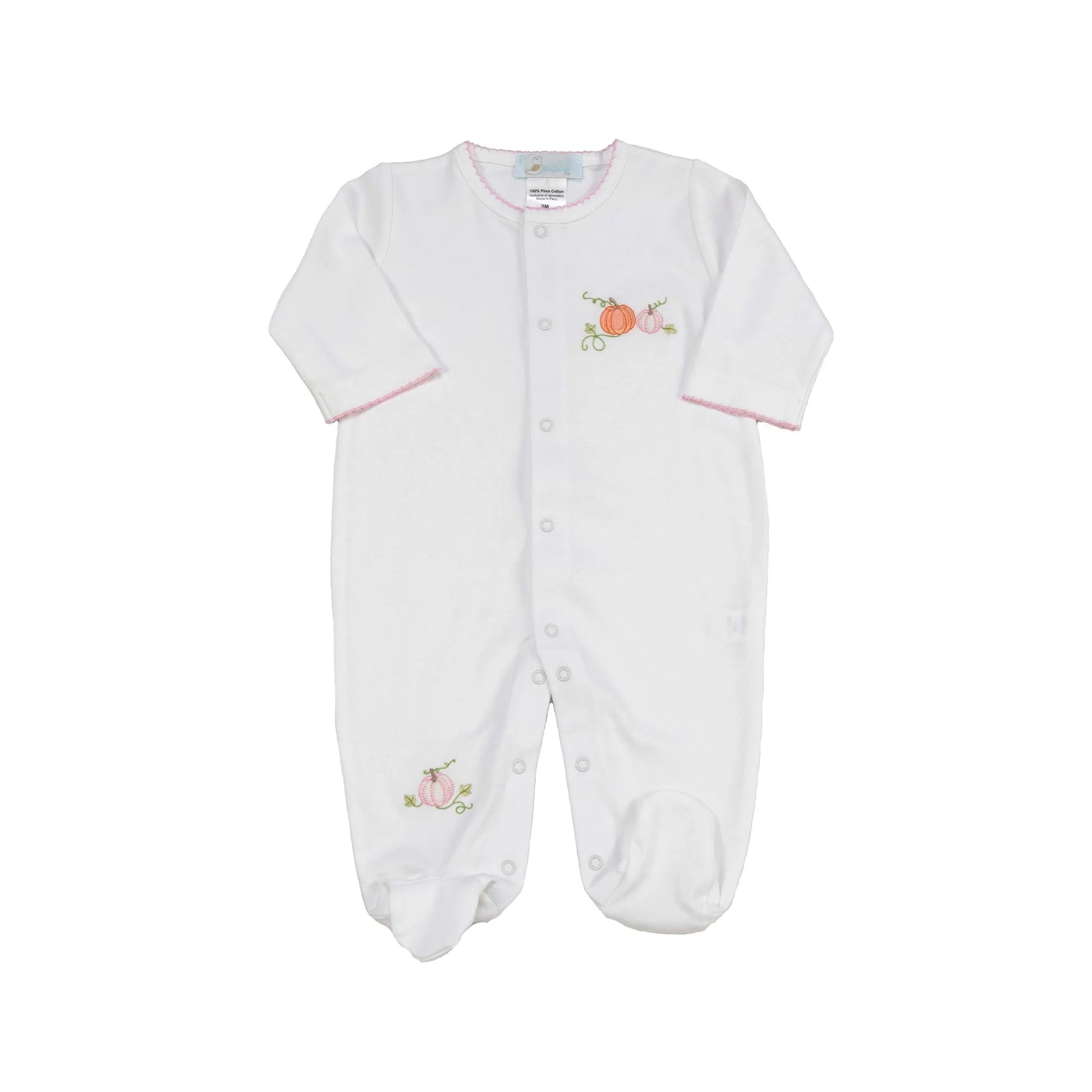 Beautiful White Footie, Pastel Pink Embroidered Pumpkin Vine