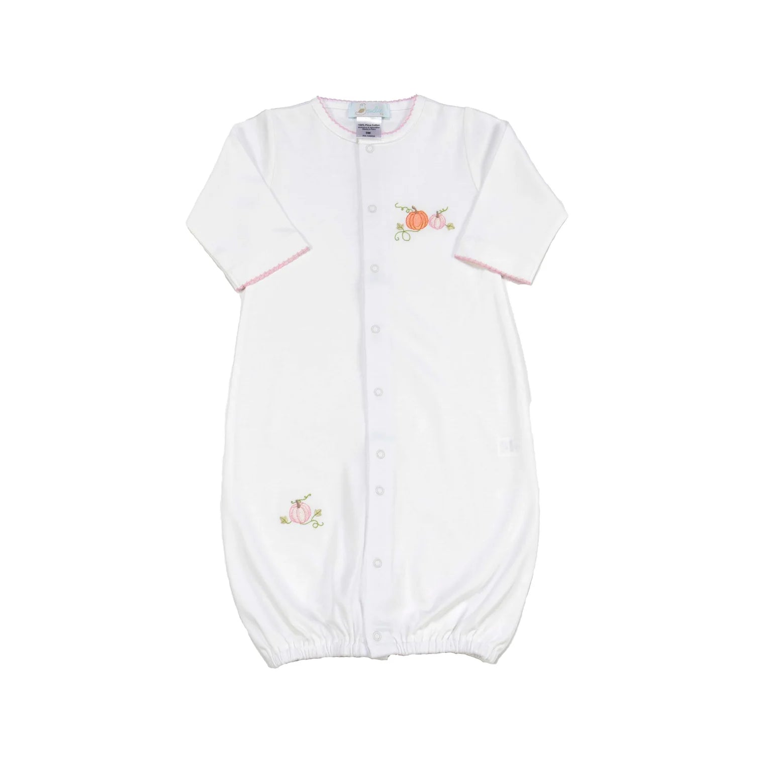 Beautiful White Gown Converter, Pastel Pink Trim Embroidered Pumpkin Vine