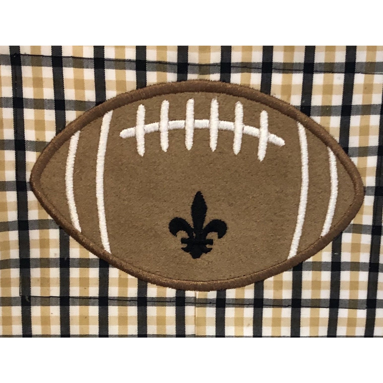 Lulu Bebe Boys Plaid Saints Shortall Football Applique