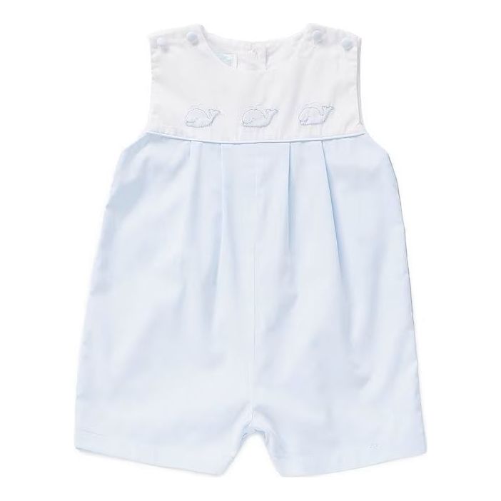Boys Sleeveless Shortall Sunsuit, Shadow Stich Whale on Front,