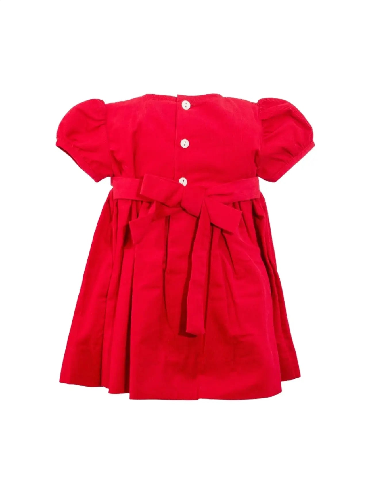 Smocked Corduroy Red Baby Girl Short Sleeve Dress