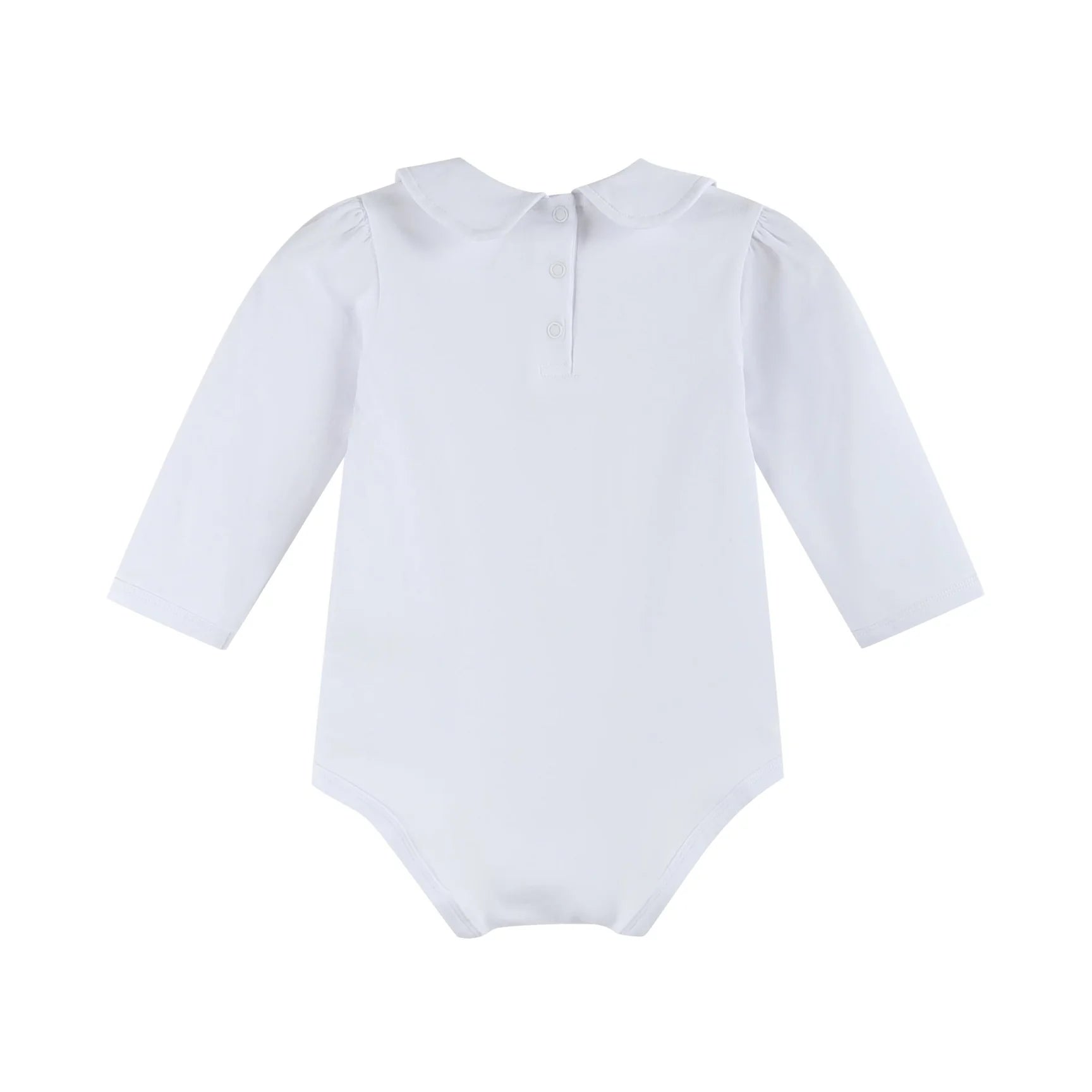 White Collared Unisex Long Sleeve Bodysuit Romper